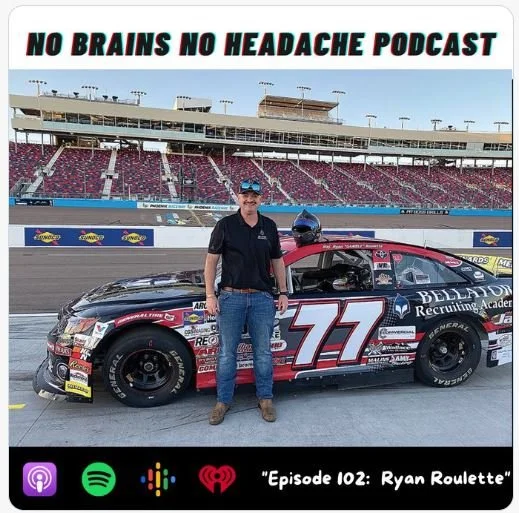 On this episode of No Brains No Headache Podcast the guys are joined by professional racecar driver and serviceman Ryan “Gamble” Roulette to discuss the world of motorsports. Sticking to the theme of making something out of nothing, he currently hails from Minot, North Dakota and has worked his way up to a very high level of racing taking his talents to the stomping grounds of Phoenix Raceway and Nashville Fairgrounds Speedway. Thank you to Gamble for taking the time for the interview and best of luck in your future races! After the interview it’s time for Cleary’s Comments, where random things are bantered about. Matt leads the way with a deep dive into the game of tennis and reminds everyone that bench clearing brawls are fully back. Then the idea involving a mafia style payroll system is tossed around before going over the form tackle of the week. Finish up with our ranking game called the "Olympics" with the topic being Movie Villain's. Open for interpretation, thank you for listening.