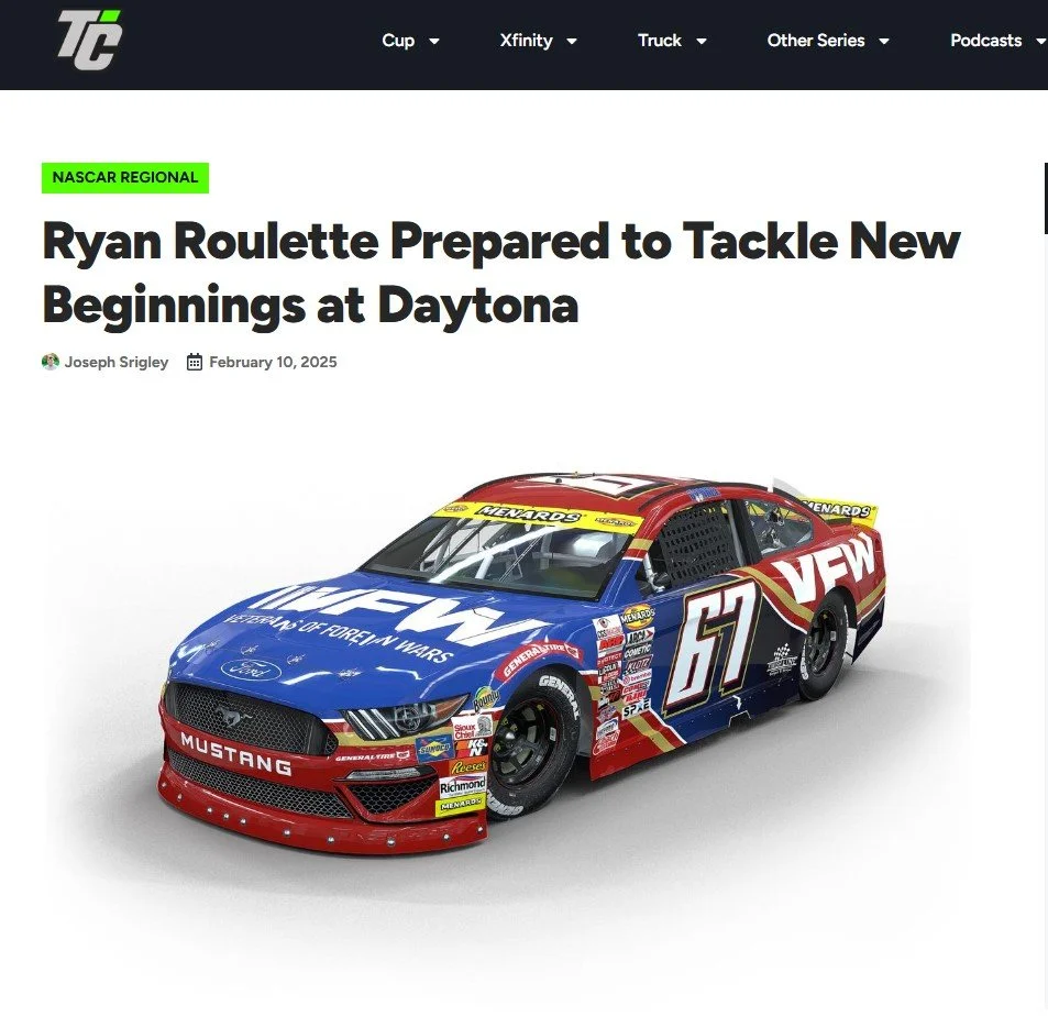 “We had a great run in our ARCA [Menards Series] opener this year, finishing ninth at Daytona International Speedway. It was a hard-fought day for our team, starting the race back in the garage with a battery issue,” said Roulette. “But in the end, we were able to find success for our No. 67 VFW car.”